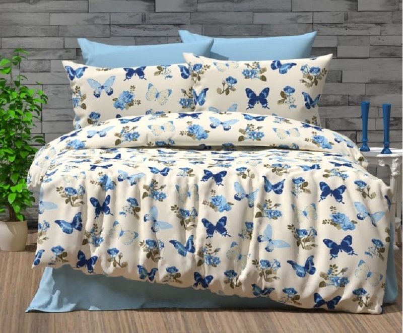 Bavlněné povlečení Motýl modrý 140x200, 70x90cm