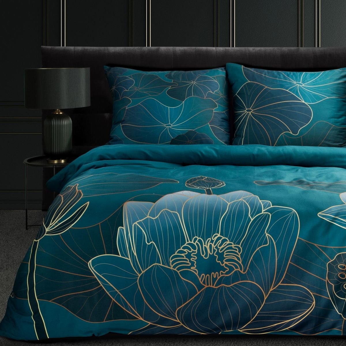 Povlečení LUXOR II. tyrkysová/zlatá 100% saténová bavlna 1x 200x220 cm, 2x povlak 70x80 cm francouzské povlečení MyBestHome