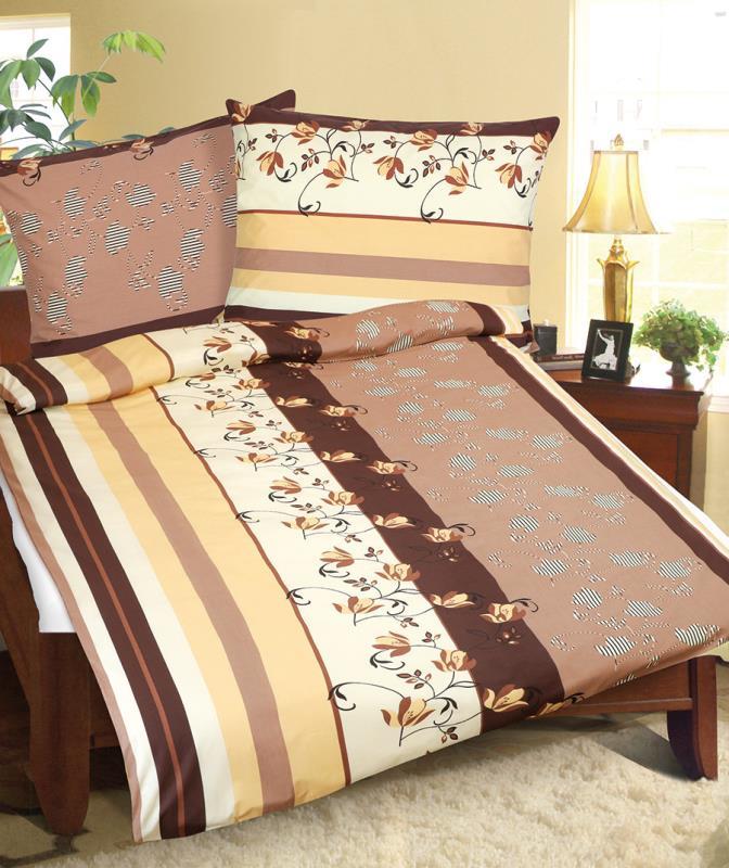 Povlečení bavlněné - hnědá kytka - 140x200, 70x90
