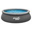 Připravte se na teplé počasí a nekonečné hodiny vodních radovánek na vlastním zahradě se samonosným nadzemním bazénem CF QUICK. Tento nadzemní bazén je navržen pro jednoduchou montáž a může být připraven během několika minut. Stačí jen připravit to správné místo na bazén, rozvinout bazénovou podložku, rozbalit bazén, nafouknout prstenec a napustit vodou. Stoupající voda bazén sama postaví. Tento nadzemní kruhový bazén s průměrem 305 cm je ideální pro celou rodinu a díky absenci pevných prvků je vhodný i pro menší děti (děti musí zůstat pod dohledem dospělé osoby). Bazén je vyroben z odolných a super pevných PVC materiálů, aby bylo zajištěno, že zůstane stát i přes veškerou zábavu, kterou tento bazén nabízí.
