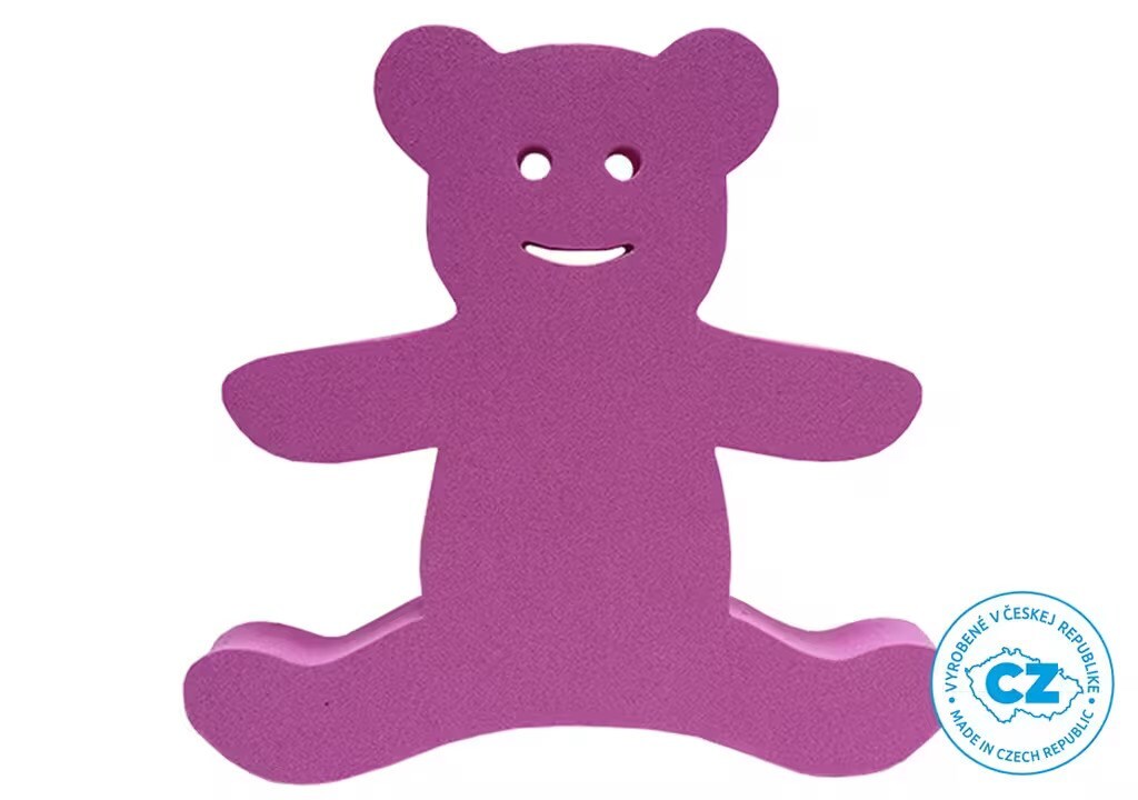 Plavecká deska ve tvaru medvídka, v růžové barvě. Díky otvorům se dá velmi snadno uchopit. Navíc je velmi lehká.