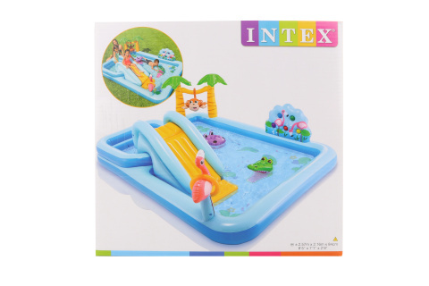 Hrací centrum Jungle Adventure nabízí dva propojené bazénky různých velikostí, které umožní dětem hrát si a zároveň si užívat vodu. Součástí balení je vodní skluzavka, nafukovací palma, plameňák, opice, kroužky na hraní a pět balónků, které umocňují hravý zážitek. Díky nafukovací podlážce je hra příjemná a bezpečná, zatímco vypouštěcí ventil usnadňuje vypouštění vody po skončení zábavy.