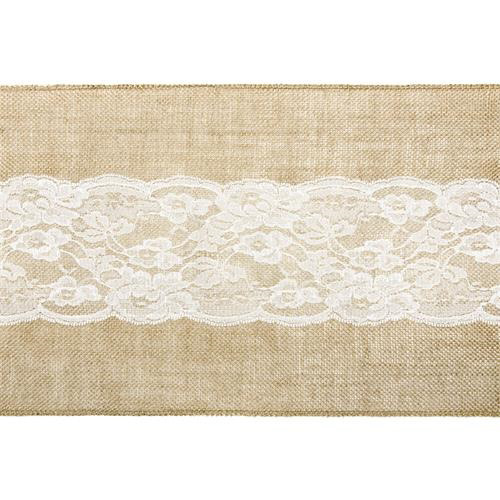 Jutová šerpa přírodní s květinovou krajkou 28 x 275 cm