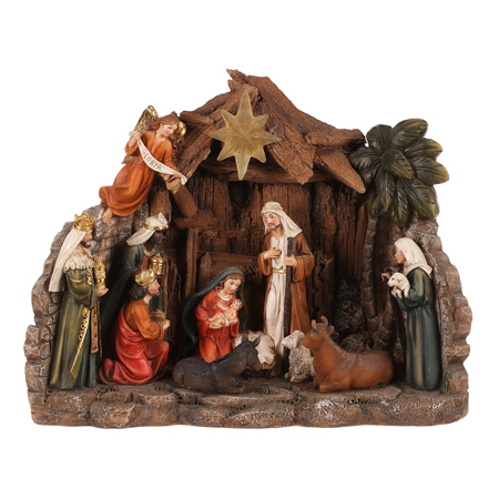Betlém se třemi králi je nejen krásnou dekorací, ale i symbolem vánoční tradice a radosti. Díky vestavěnému LED osvětlení vynikne v každém interiéru a přinese teplé světlo, které podtrhne slavnostní náladu. Vyroben z kvalitního polyresinu v sytých hnědých odstínech, představuje detailní a působivý záznam narození Ježíška.