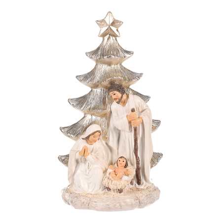 Svatá rodina před vánočním stromkem - polyresin, barva béžová.