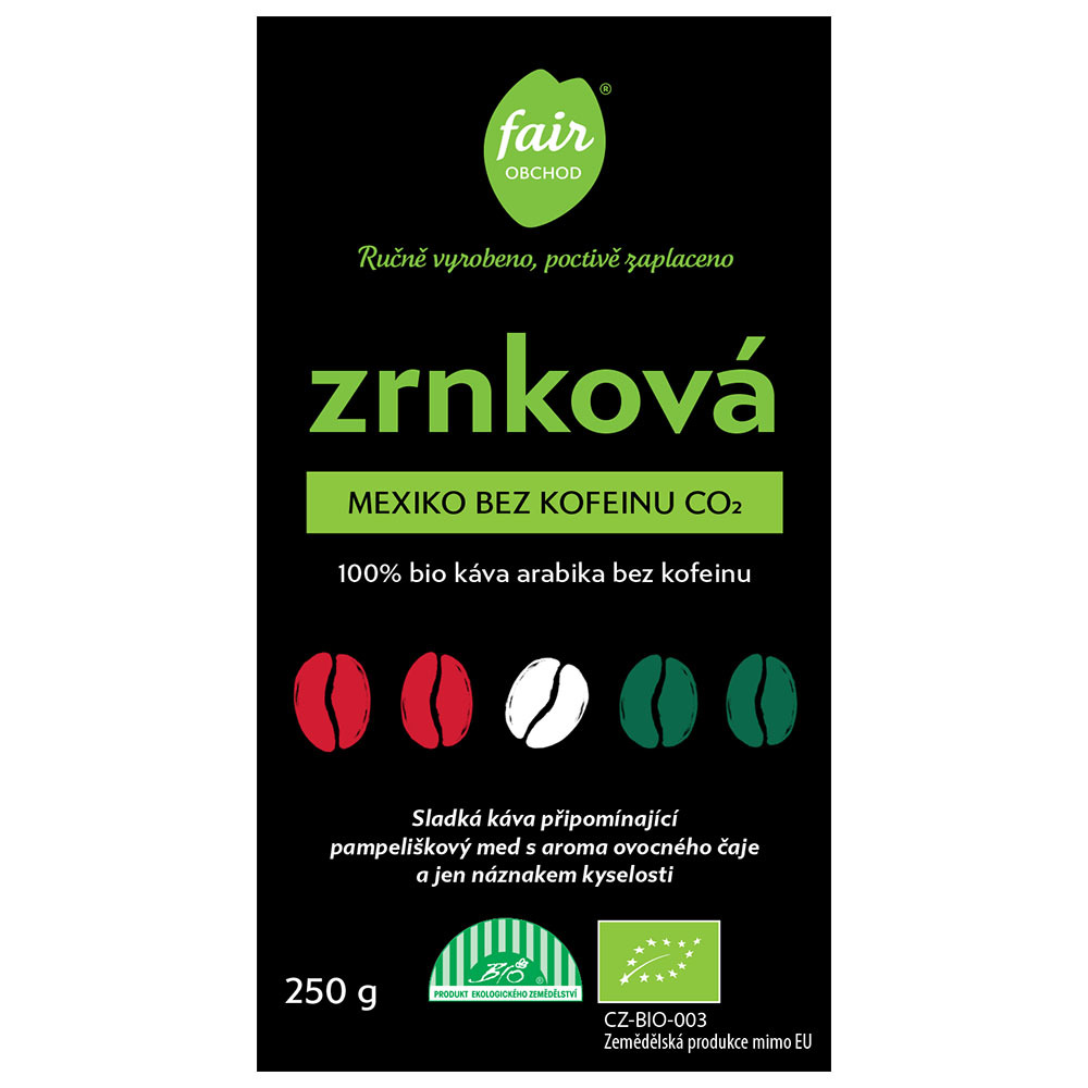 Fairobchod Bio zrnková káva Mexiko bez kofeinu CO2, 250 g