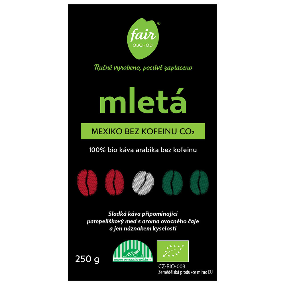 Fairobchod Bio mletá káva Mexiko bez kofeinu CO2, 250 g