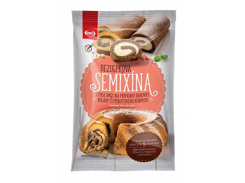Bezlepková Semixína je náš nejnovější výrobek určený zejména celiakům. Z naší sypké směsi si můžete sami doma upéct bábovku, roládu či piškotový korpus snadno a rychle a nemusíte být profesionální cukrář.
