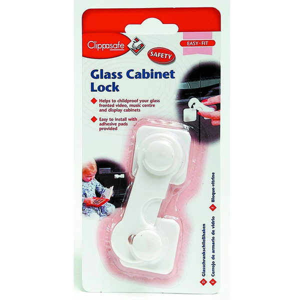Zámek Clippasafe na prosklenou skříňku pomáhá zabránit dětem otevírat prosklené skříňky na video, audiosystém a vitríny.