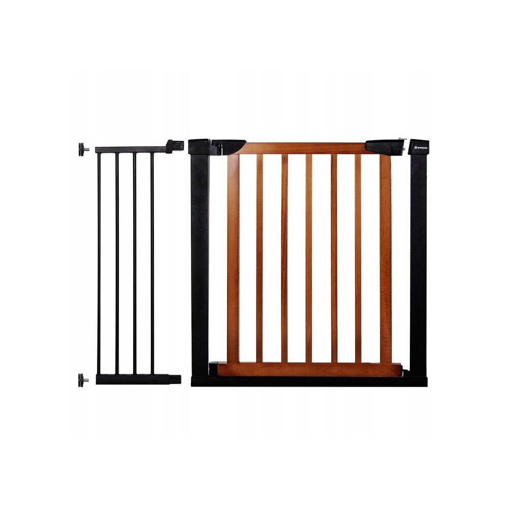 Kvalitní bezpečnostní zábrana s rozšiřujícím modulem, vhodná pro otvory s rozměry 75 - 82 cm a 103 - 110 cm. Stylové provedení s kovovým rámem a dřevěnými dvířky. Spolehlivá ochrana částí domu před nekontrolovatelných vstupem dětí nebo zvířat. Jednoduše nastavitelná s řadou bezpečnostních prvků zvyšujících stupeň ochrany. Certifikace dle ASTMF1004-13 / EN 1930:2011.