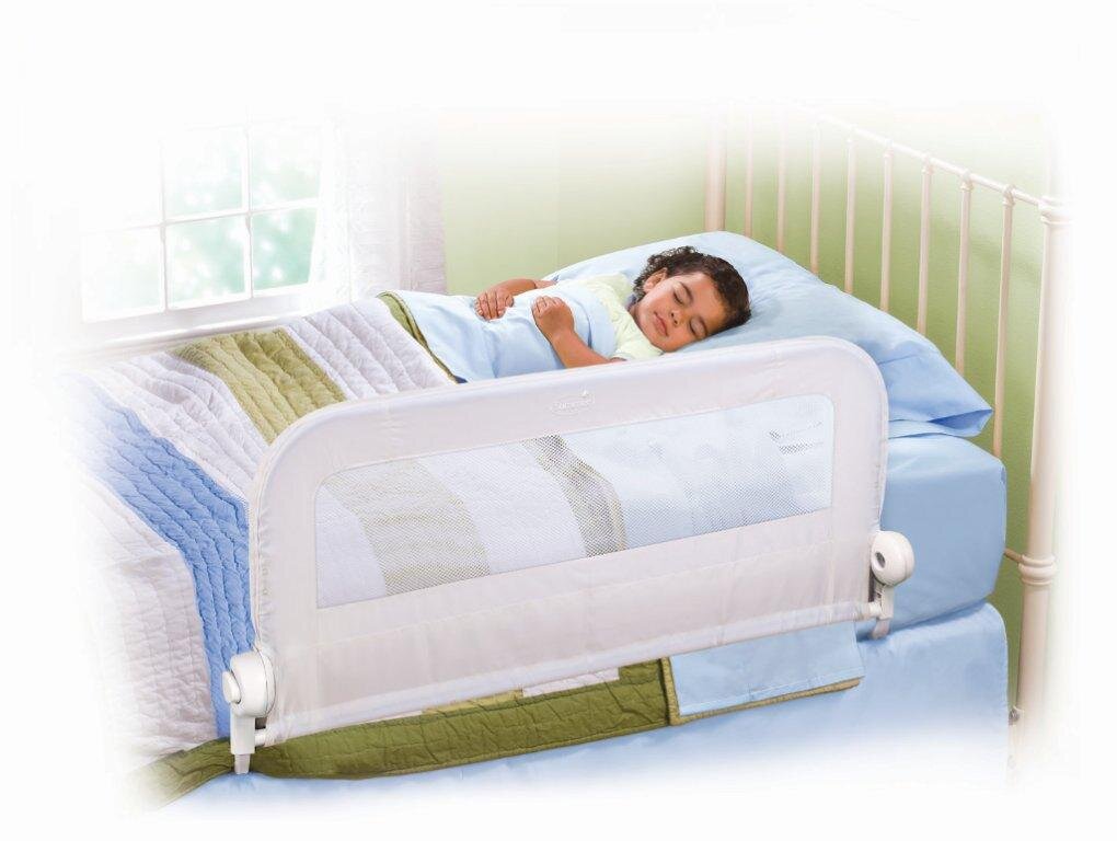 Jednostranná bezpečnostní zábrana je vhodný doplňkem pro přechod dítěte z dětské postýlky do větší. Pokud máte postel z jedné strany u zdi, druhou stranu je vhodné proti pádu opatřit touto zábranou.Je snadno nastavitelná pro jakýkoliv typ matrace a pro snadný přístup do postele je možné jí sklopit směrem dolů. Je vhodná pro děti od 1,5 roku do 5 let.Zábrana na postel váží pouze 3,42 kg a splňuje veškeré standardy normy ASTM F2085.Konstrukce je z kvalitního kovu, který je potažený látkou a síťovinou.Rozměry: výška 51cm; délka 90cm