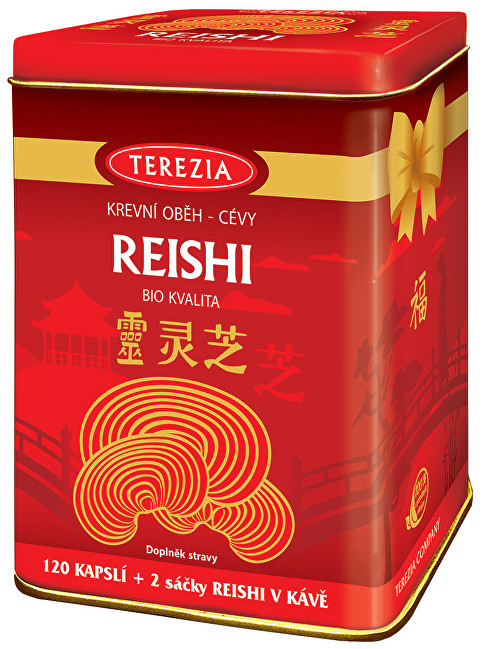 Terezia Company Reishi Bio 120 kapslí + Reishi v kávě 2 ks - dárkové balení v plechové dóze