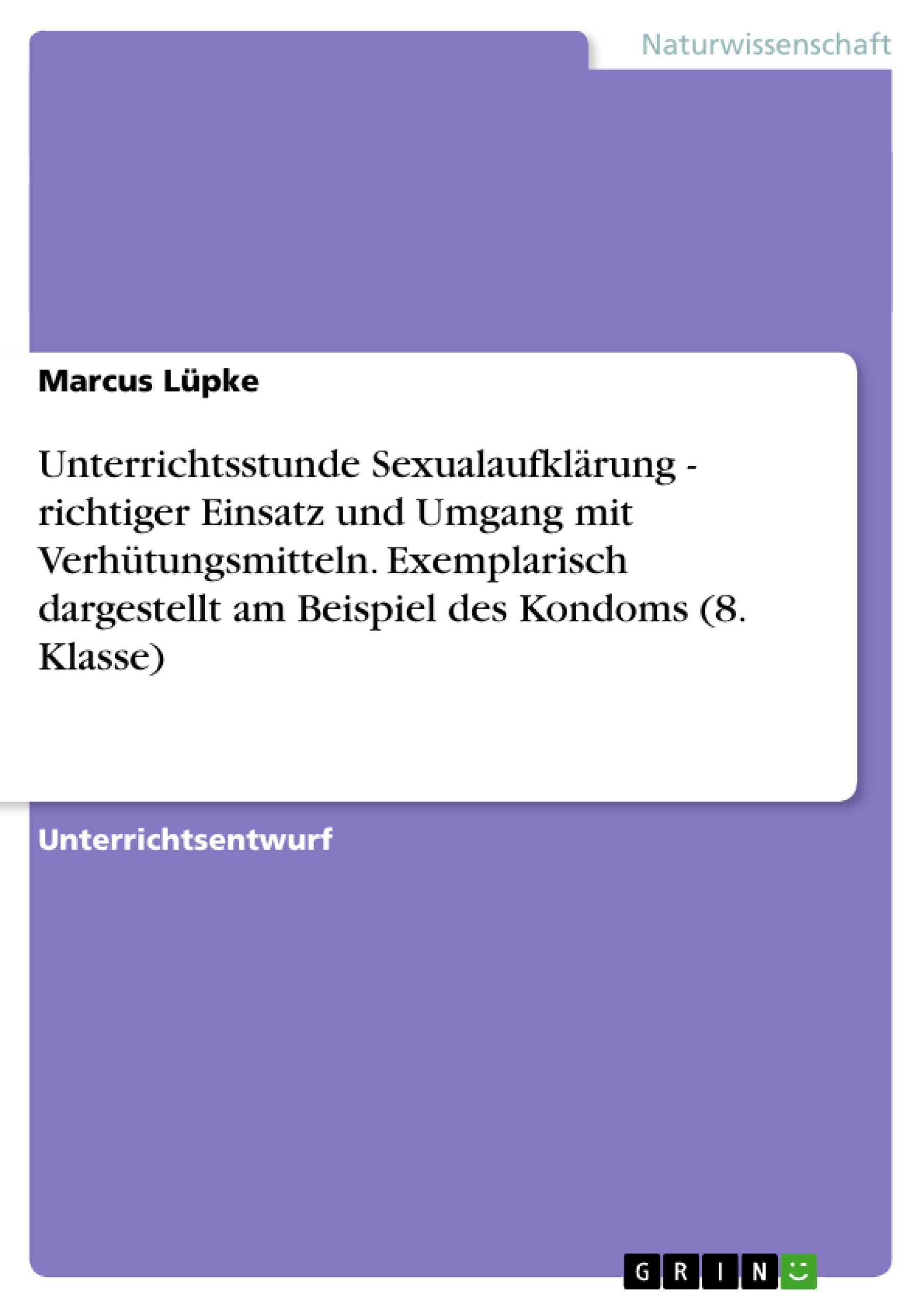 Unterrichtsstunde Sexualaufklärung - richtiger Einsatz und Umgang mit Verhütungsmitteln. Exemplarisch dargestellt am Beispiel de