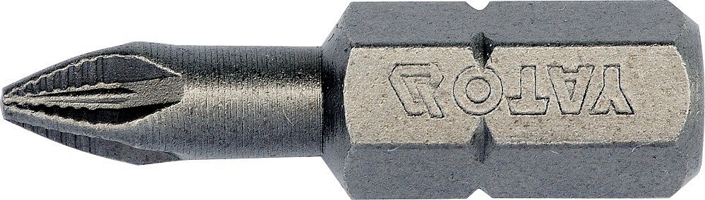 Kvalitní bity Yato se systémem Non-Slip, kdy je hrot bitu vybaven žebrováním zabraňujícím sklouznutí šroubu a zvyšujícím přenos kroutícího momentu.