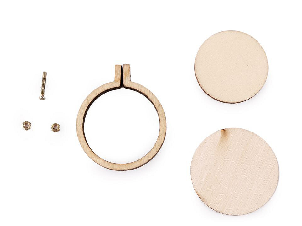 Tento přírodní dřevěný rámeček ve tvaru kruhu o vnějším průměru 40 mm je ideální pro vaše vyšívané motivy - ať už chcete vytvořit originální přívěsek na krk, nebo ozdobit dárky vlastnoručně vyrobeným uměleckým detailem. Vyšitý obrázek stačí přilepit na menší destičku, poté tuto destičku umístit do rámečku, který je možné pevně uzavřít pomocí přiloženého šroubku s maticemi, což zajistí stabilitu a zároveň umožní snadné otevírání pro případné úpravy. Rámeček můžete také použít jako krásný a praktický obal pro vaše drobné výšivky, které tak neztratí svůj tvar a snadno je přenesete kamkoli s sebou.