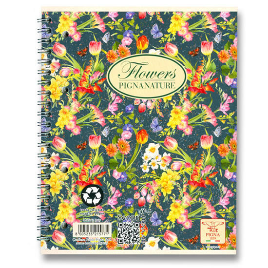 Kroužkový blok Pigna Nature Flowers A4, čtverečkovaný, 60 listů, mix motivů