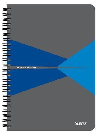 Blok "Office", šedo-modrý, drátěná kroužková vazba, A5, linkovaný, 90 listů, plastový povrch, LEITZ
