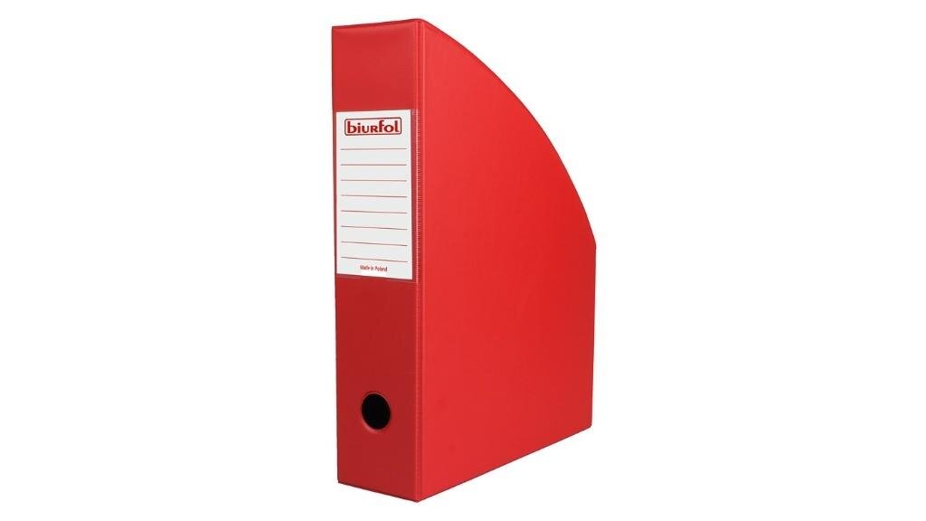 Wykonany z kolorowej folii PVC, wewnątrz usztywniony tekturą. Format A4 o ściętych bokach. Wyposażony w kieszonkę z wymienną etykietą opisową na grzbiecie. Okrągłe wycięcie na palec pozwalające na łatwe wysuwanie pojemnika. Szerokość grzbietu 7 cm. číst celé