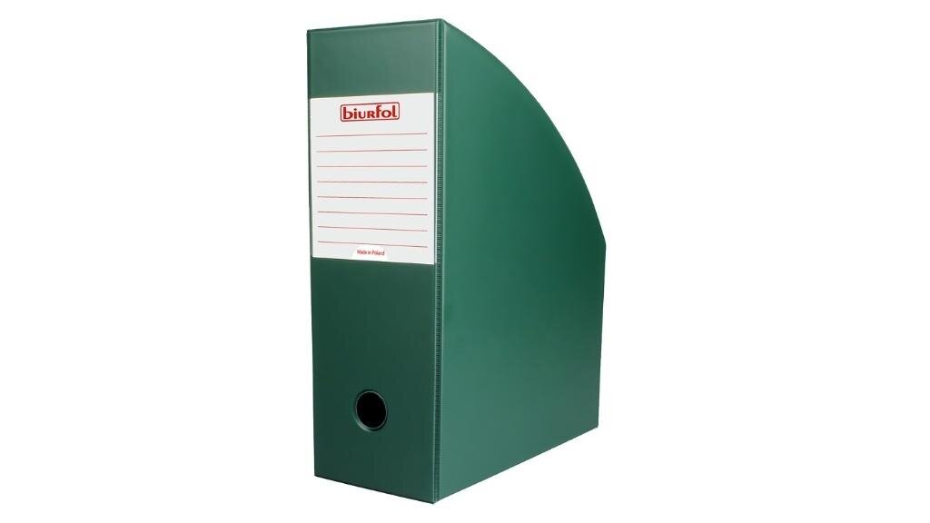 Wykonany z kolorowej folii PVC, wewnątrz usztywniony tekturą. Format A4 o ściętych bokach. Wyposażony w kieszonkę z wymienną etykietą opisową na grzbiecie. Okrągłe wycięcie na palec pozwalające na łatwe wysuwanie pojemnika. Szerokość grzbietu 10 cm. číst celé