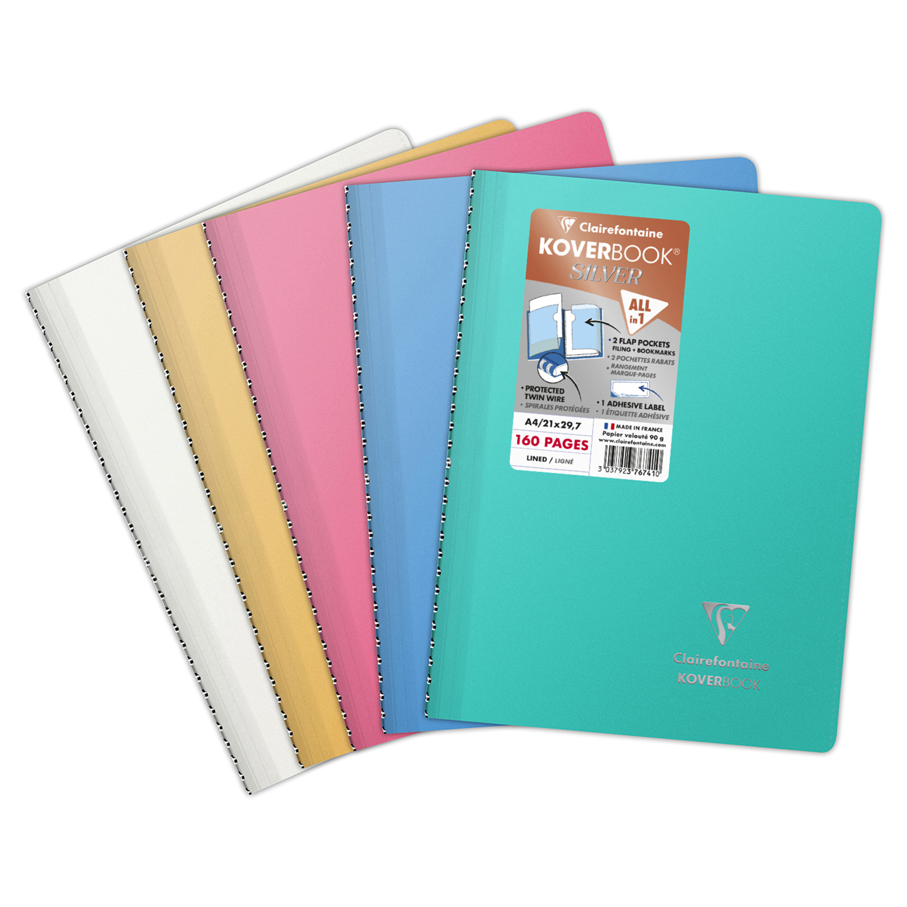 Clairefontaine, Zápisník Koverbook, A4, linkovaný, 80 listů, silver