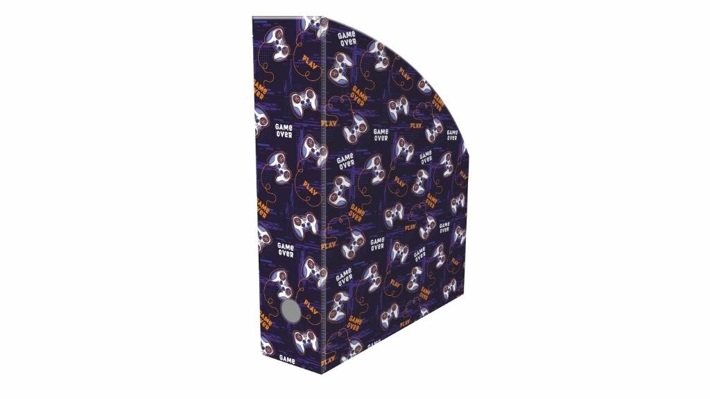 Wykonany z folii PVC z pełnym, ozdobnym nadrukiem, wewnątrz usztywniony tekturą. Okrągłe wycięcie na palec pozwalające na łatwe wysuwanie pojemnika. Szerokość grzbietu 7 cm. Format A4 o ściętych, zaokrąglonych bokach. číst celé