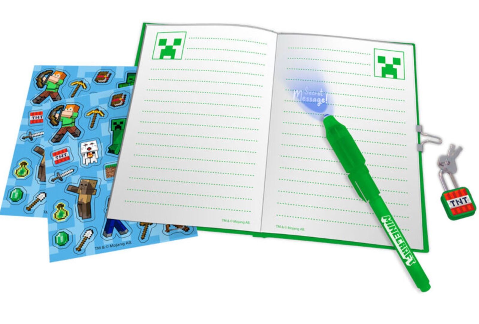 Tento oficiální, licencovaný produkt přináší vše, co malý i větší fanoušek Minecraftu může chtít - poznámkový linkovaný blok formátu A5, který je perfektní pro psaní, kreslení nebo tajné zápisky, doplněný o speciální magickou propisku, jež zanechává neviditelný text viditelný jen pod ultrafialovým světlem. K tomu přidejte 20 tematických samolepek s grafikou hry, které skvěle doladí deník i další věci vašeho dítěte.