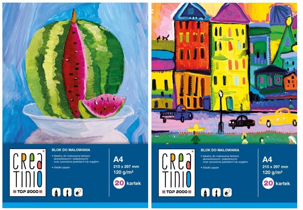 Opakowanie zbiorcze 10 szt. Mix wzorów.Idealny do malowania farbami akwarelowymi i plakatowymi oraz rysowania pastelami lub węglemGładki papier o gramaturze 120g/m2Kartonowa podkładka usztywniająca z tyłu bloku