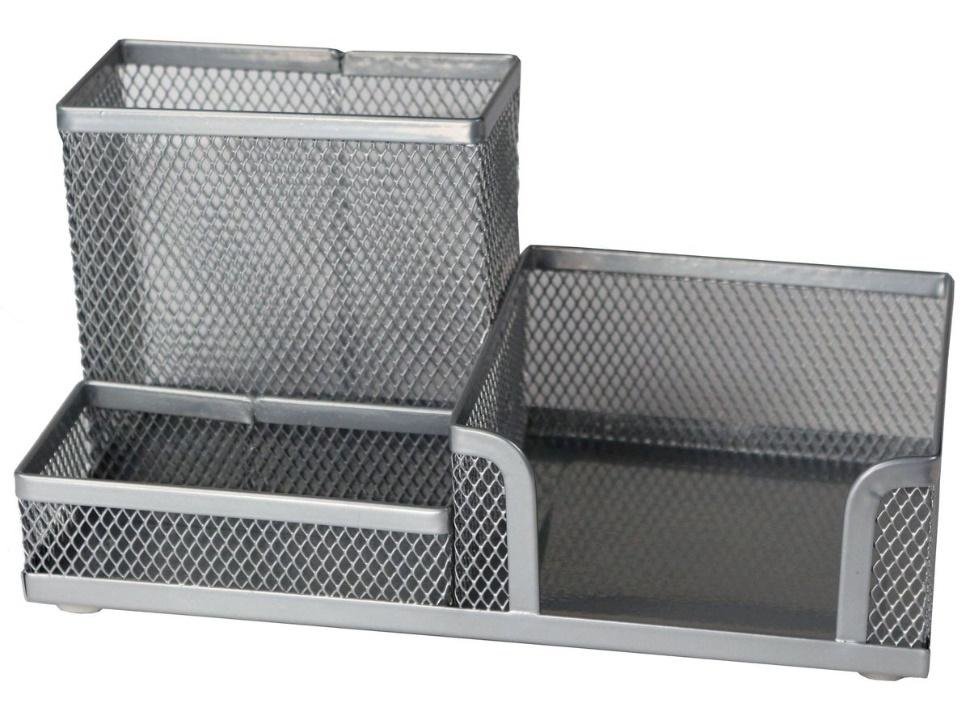 Przybornik na biurko - wykonany z metalowej siatki powlekanej lakierem - kolor srebrny - szer. 20 cm x wys. 9,7 cm x gł. 10 cm číst celé