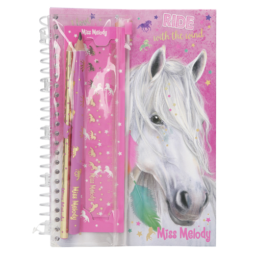 Super cool souprava pro psaní v jedinečném designu značky Miss Melody! S tímto nádherným spirálovým zápisníkem si můžete zapsat všechny důležité poznámky, na které nechcete zapomenout!Součástí je i psací set v pouzdře, který obsahuje dvě tužky a pravítko. Atraktivní dárek pro všechny...
