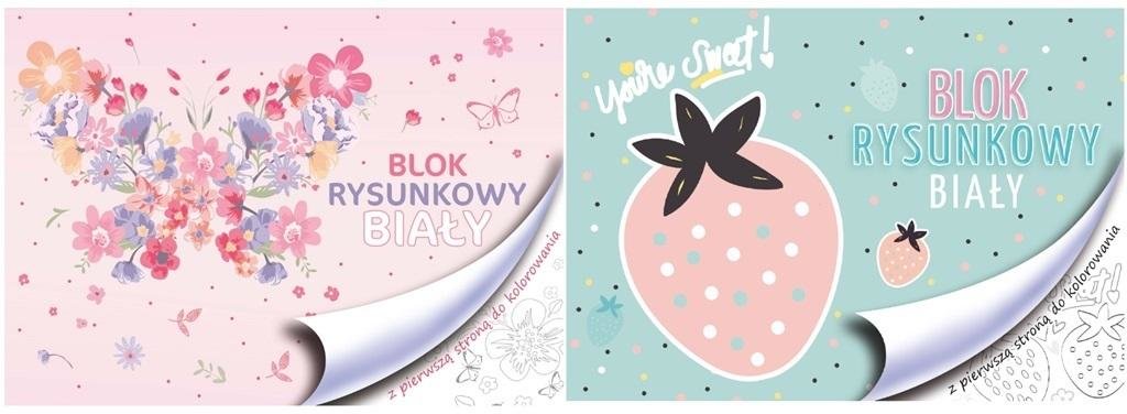 Blok rysunkowy biały A4/ 20 k. z pierwszą stroną do kolorowania, 2 wzory číst celé