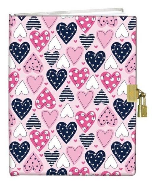 Pamiętnik z kłódką 13x18 Serca 60K gładki
