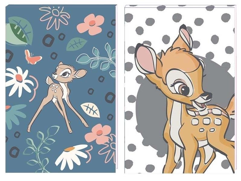 Notes A7 posiada 30 kartek z kolorowym poddrukiem. Grzbiet klejony po krótszym boku. Charakteryzuje się estetycznym wykończeniem i modną okładką z serii Bambi