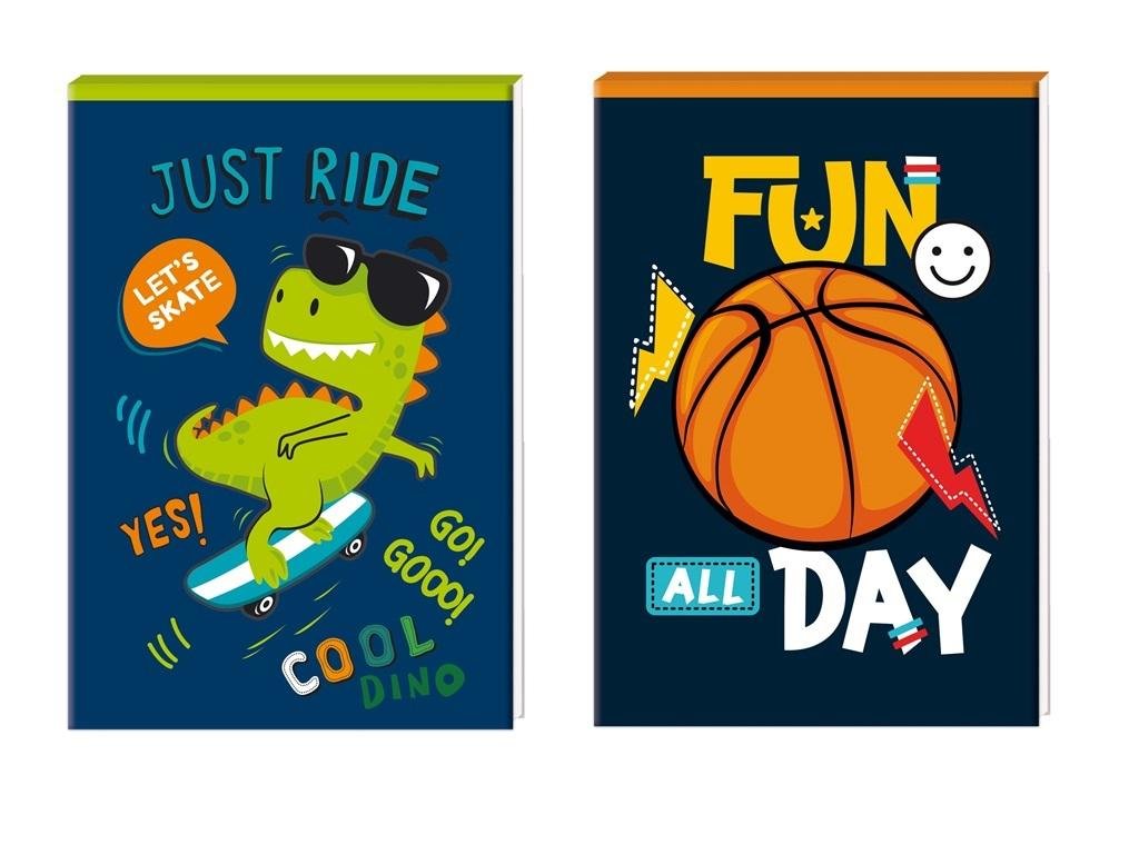Notes A7 posiada 30 kartek z kolorowym poddrukiem. Grzbiet klejony po krótszym boku. Charakteryzuje się estetycznym wykończeniem i modną z motywem dla chłopców