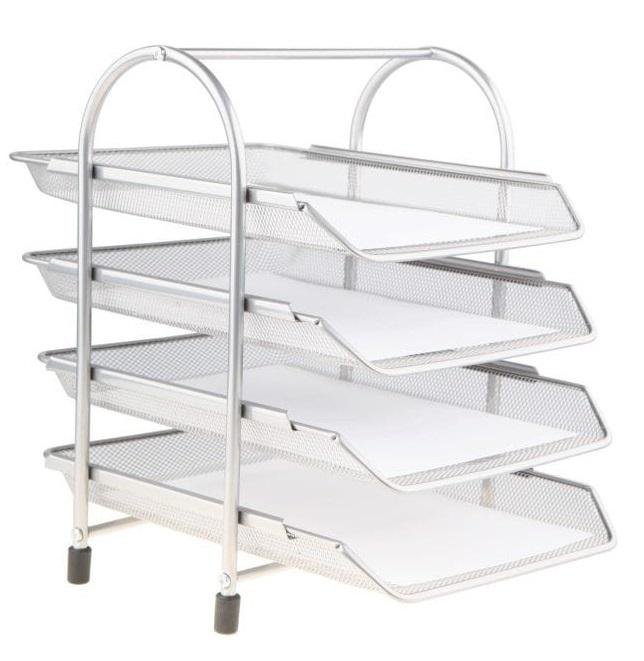Elegantní stříbrná police na dokumenty formátu A4 nabízí praktické vysouvací tácové přihrádky, díky nimž snadno přistoupíte ke všem uloženým listinám. Police je navíc vybavena pohodlným držadlem pro snadné přenášení, což oceníte při přesunech dokumentů mezi kanceláří a domovem nebo během různých schůzek.