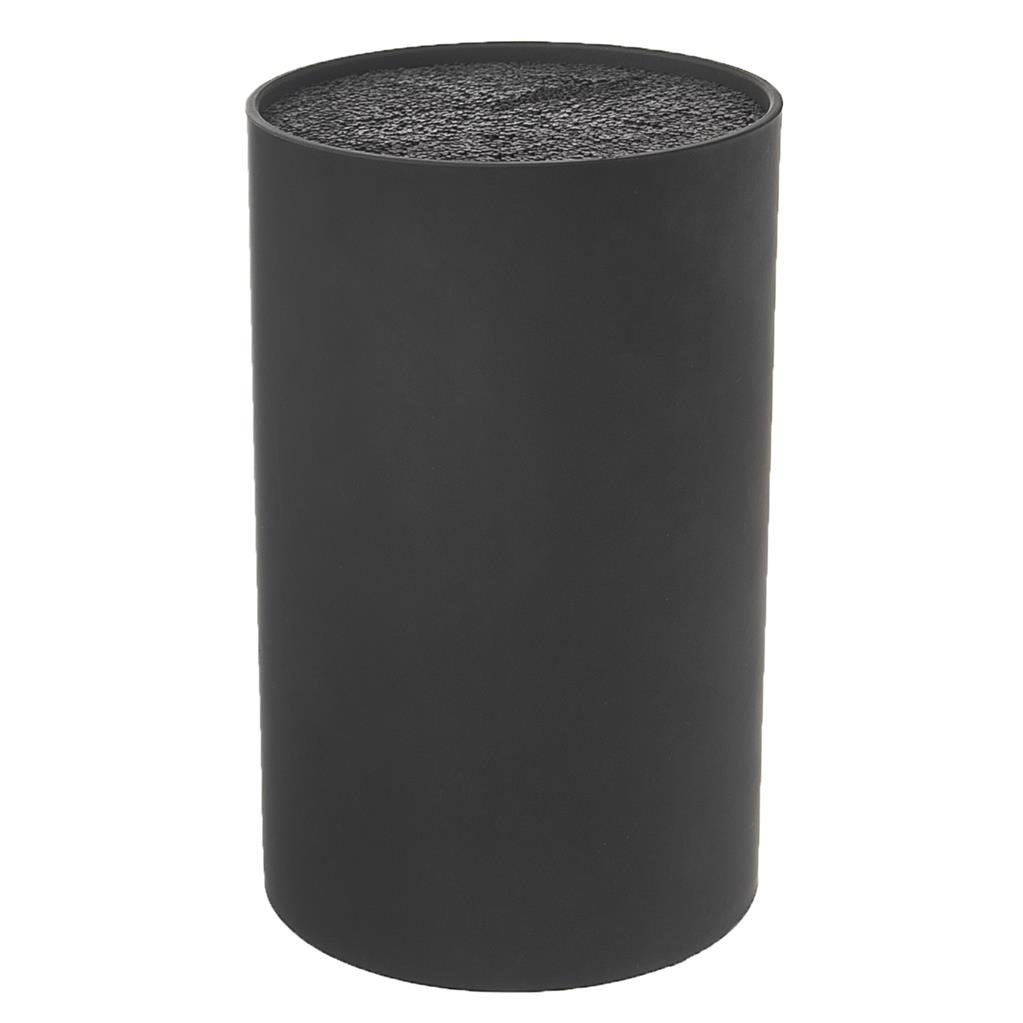 Stojan na nože s plastovými štětinami brání poškrábání vložených nožů i dalších kuchyňských pomůcek - nůžky, škrabky... Při čištění štětiny jednoduše ze stojanu vyjmeme. Materiál: plast. Barva bílá a černá. Rozměry v. 18 cm, pr. 11 cm.
