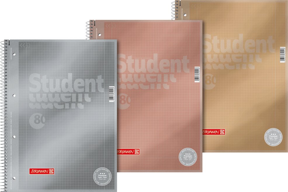 Studentský blok A4 čtverečkovaný, premium kvalita papíru 90g, nepropisují se stránky. Desky metalické, 3 barvy.