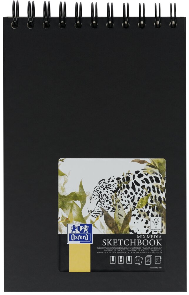 Vhodný pro práci s akvarelem, inkoustem, kvašem, pastelkou a tužkou. Díky mikroperforaci se stránky snadno trhají. Zrnitý umělecký papír. Recyklovatelný papír, 225 g/m2, černý