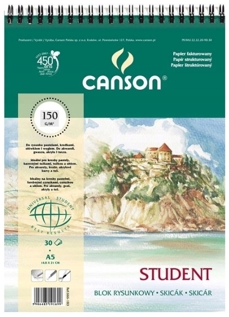 Blok rysunkowy A5 30 k. 150g Student na spirali, Canson
