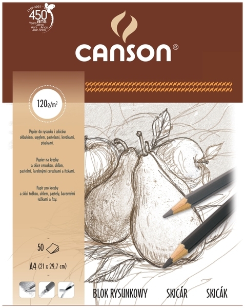 Blok rysunkowy A4 50 k. 120g Gruszki ziarnisty, Canson