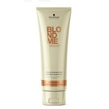 Šampon na vlasy **Schwarzkopf Blond Me Color Enhancing Blonde Caramel Shampoo**. Šampon na vlasy Schwarzkopf Blond Me Color Enhancing Blonde Caramel Shampoo pro bohatou karamelovou blond. Bohaté složení vlasy hloubkově vyživuje a chrání barvu vlasů. Tento jedinečný šampon zanechává vlasy lesklé, pružné s karamelovým nádechem. Jemné složení nezatěžuje vlasy. Dopřejte si hloubkovou péči pro Vaše blond vlasy. **Použití**: Aplikujte na vlhké vlasy. Jemně vmasírujte a poté důkladně opláchněte.