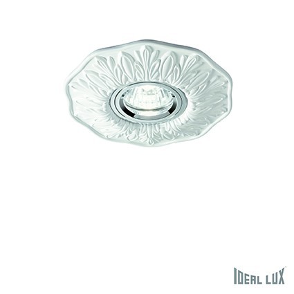 Zápustné svítidlo Polka FI1 z kolekce dekorativního osvětlení Ideal Lux o průměru 14cm vynikne v každém rustikálně zařízeném interiéru. Jeho chromový rámeček je zdobený bílou sádrovou ozdobou s vyrytými ornamenty připomínající lístky. Svítidlo je osazeno paticí GU10 s maximálním příkonem žárovky 1 x 50 W. Zdroj není součástí balení. Doporučujeme použít úspornou LED žárovku s dlouho životností. Krytí IP20 je určeno pro interiérovou montáž.