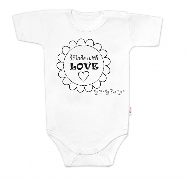 Body krátký rukáv Made with love, Baby Nellys, bílé, vel. 80; 80 (9-12m)