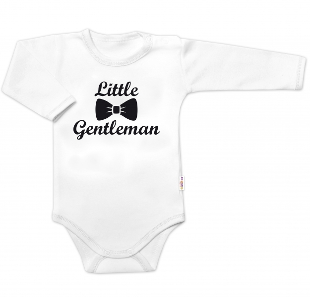 Body dl. rukáv Little Gentleman, bavlna Baby Nellys, bílo/černé, vel. 74; 74 (6-9m)