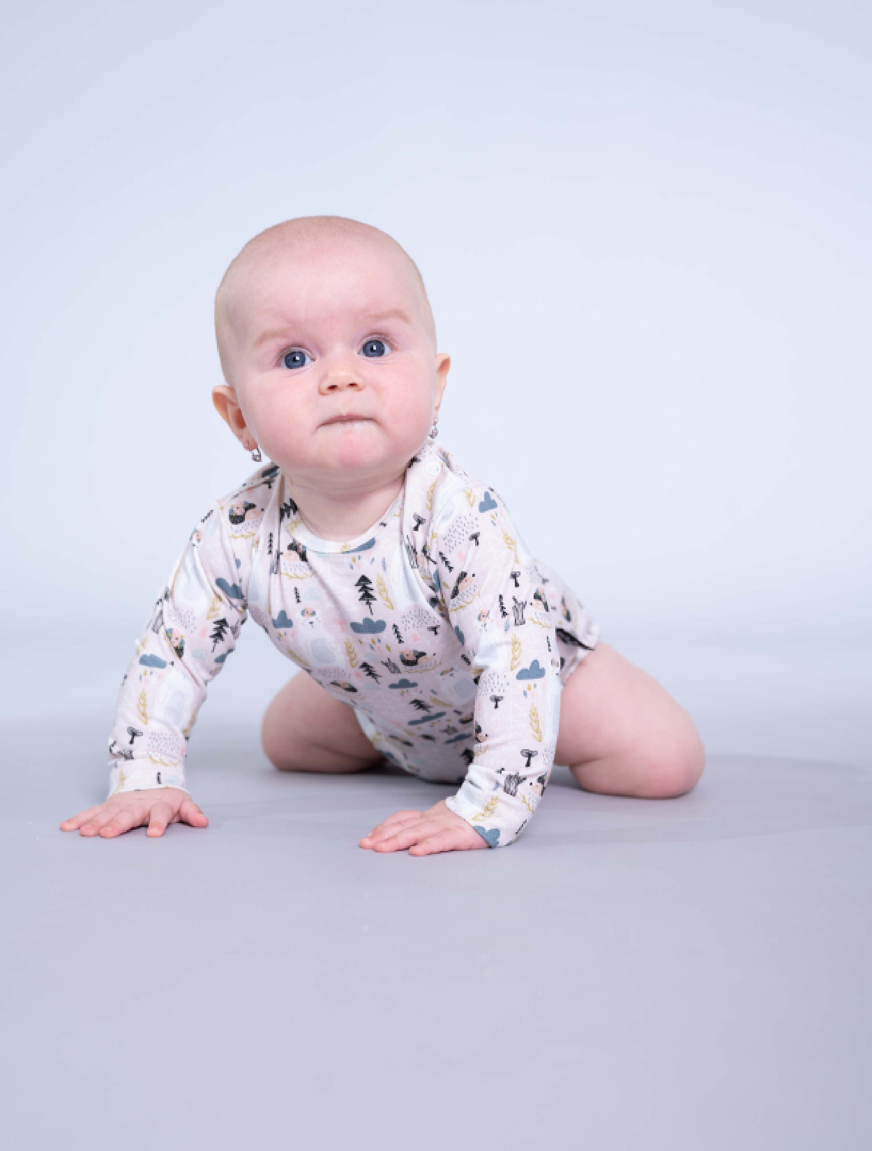 Měkké a pohodlné body na patentky s dlouhým rukávem vhodné na látkové i jednorázové pleny. Díky prodlouženému sedu se dvěma řadami patentek v rozkroku bodyčko o velikost povyroste s vaším miminkem, ta