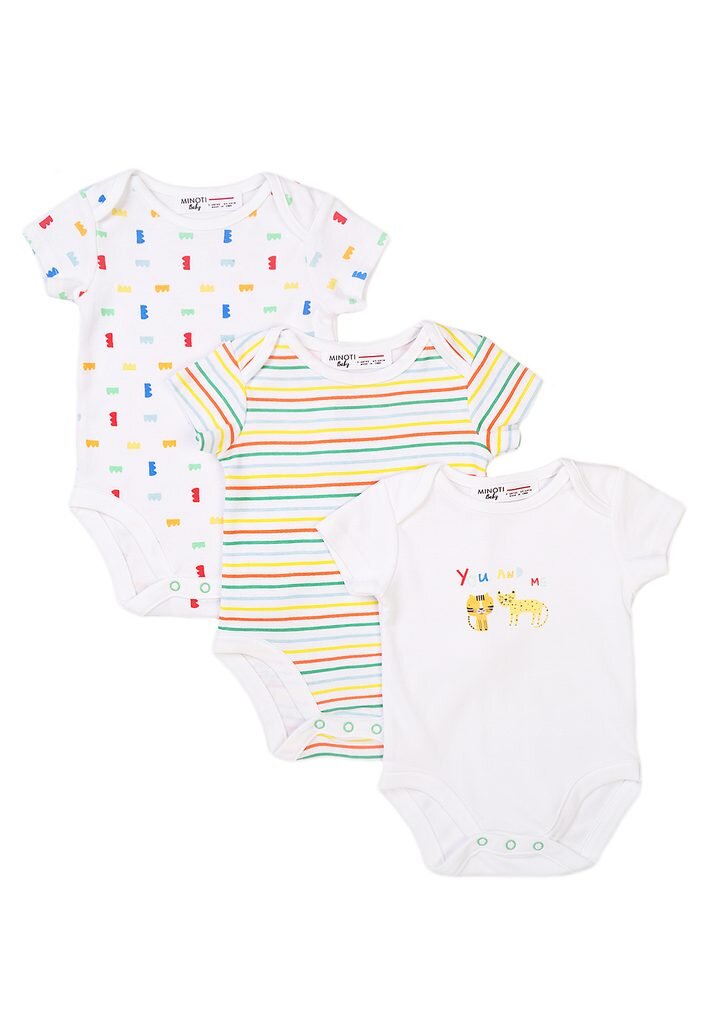 Body kojenecké 3pack, Minoti, Smiling 8, bílá - 56/62