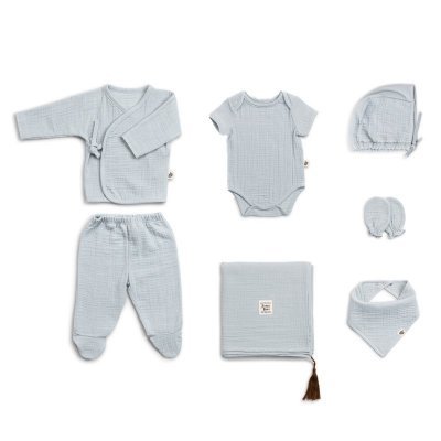 FUNNABABY Mušelínový Novorozenecký set 8 dílný Dove Grey vel. 0 - 3 m.