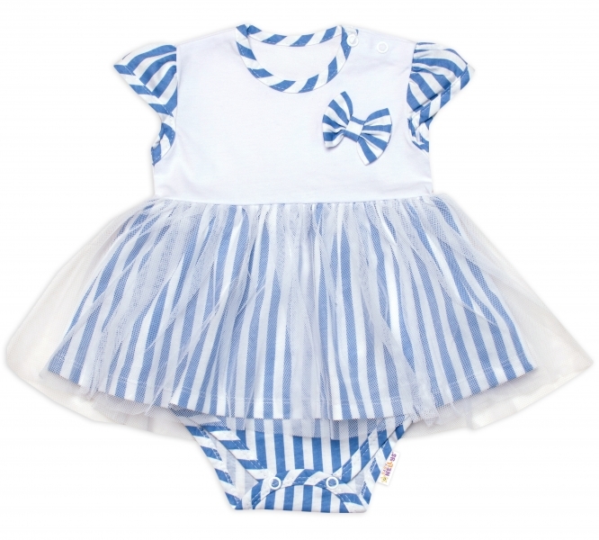 Sukničkobody kr. rukáv, bavlna/týl, Mrofi, Marina - bílá/modrá, vel. 74