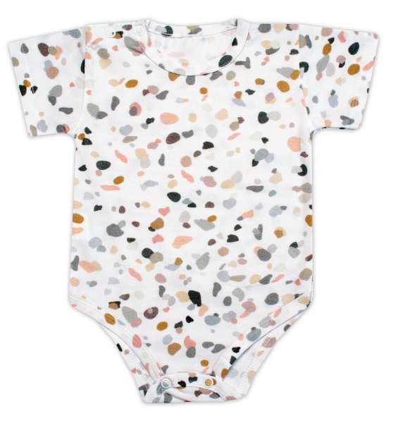 Body kr. rukáv, bavlna, zapínání u krku Kamínek Mrofi, bílé, vel. 80; 80 (9-12m)