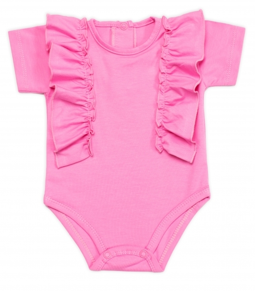Body kr. rukáv s volánkem, bavlna, zapínání vzadu, Emily Mrofi, růžové, vel. 74