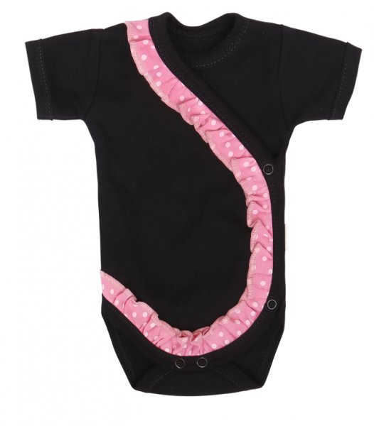 Mamatti Kojenecké body kr. rukáv, zapínání bokem, Princezna Puntík - černo/růžové; 56 (1-2m)